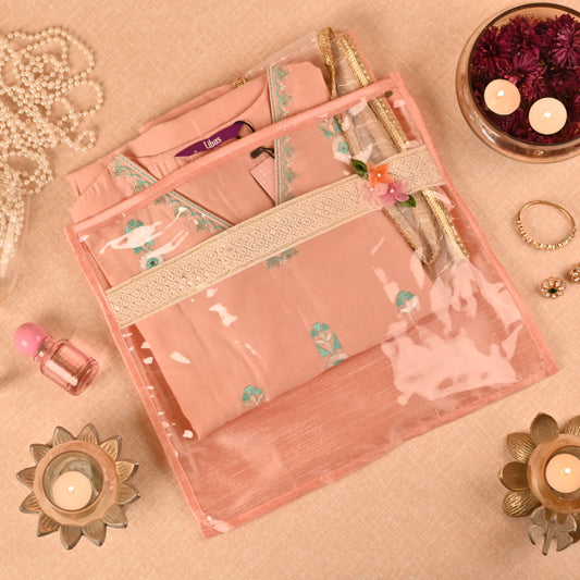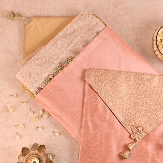 Protect and present your sarees in our beautifully designed trousseau covers. Made with high-quality materials and adorned with traditional embroidery, these covers are perfect for organizing and gifting sarees during weddings.