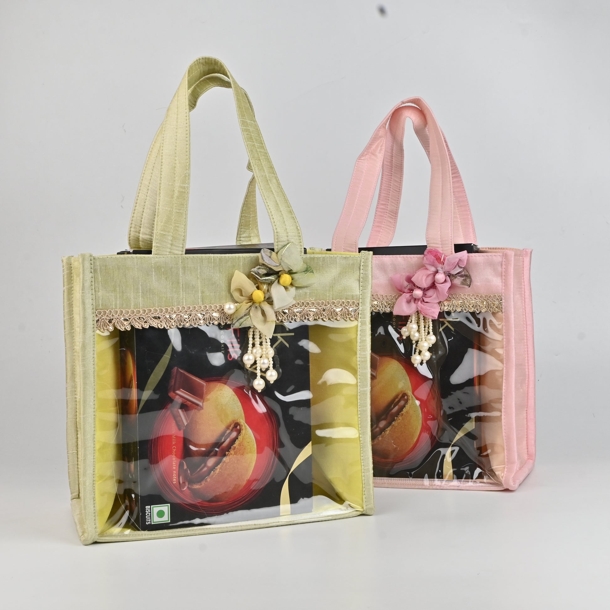 Banaavat Essence Dupion Silk Room Hamper – Transparent Front & Handcrafted Flower (9"x8.5"x5.5")