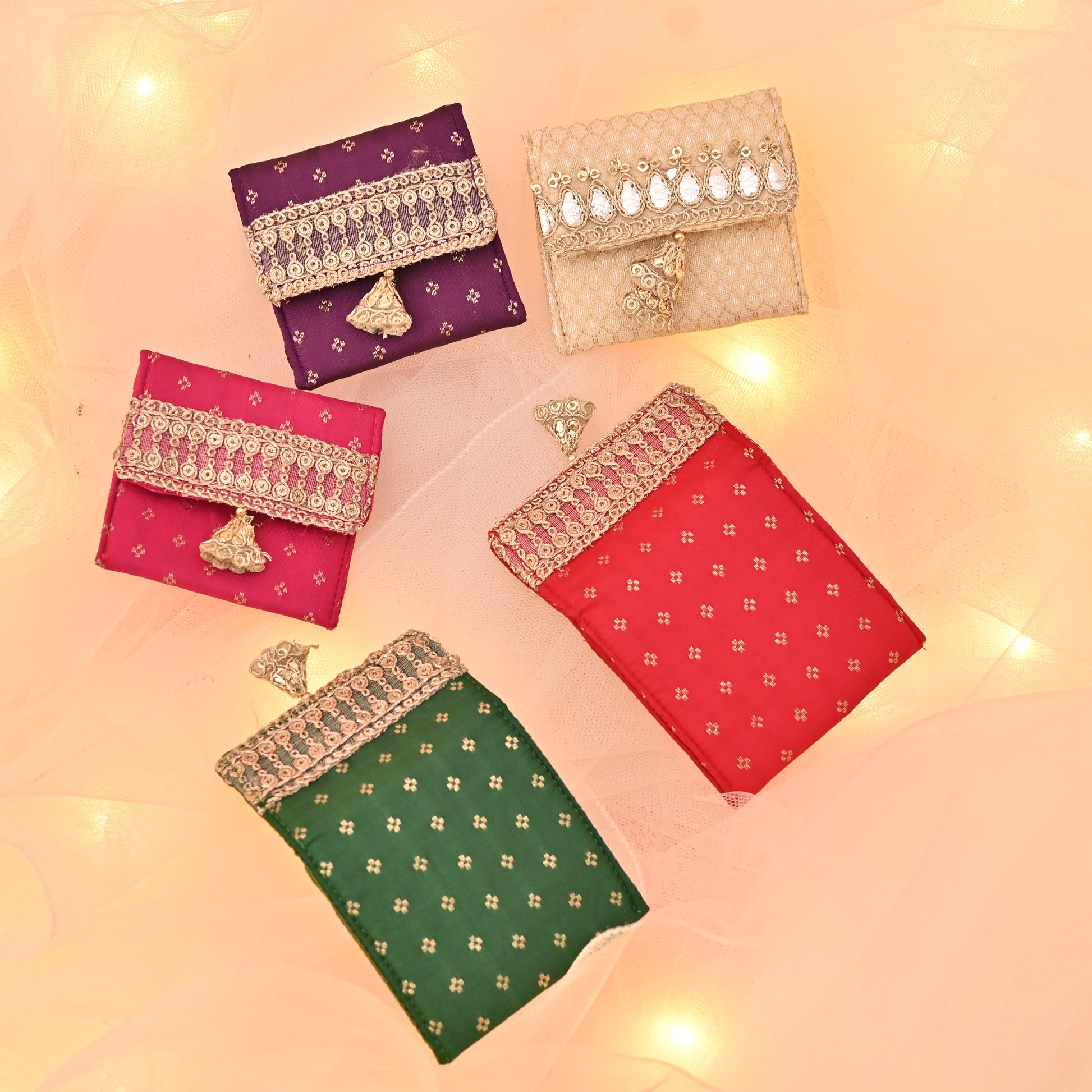 Banaavat Essence Petite Silk Coin Pouch Set – Gota Lace Detailing (2.5"x2.5", Set of 5)