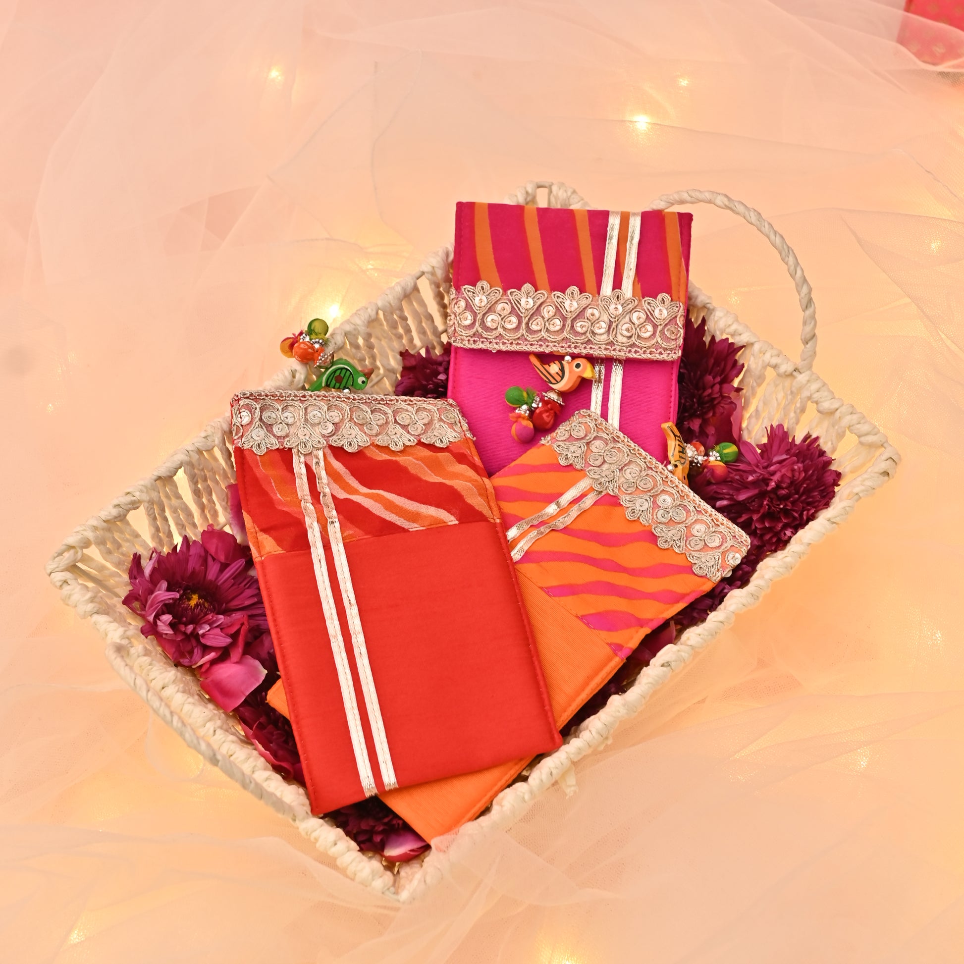 Banaavat Essence Lehriya Coin Pouch – Parrot Tassel Accent, (Set of 3)
