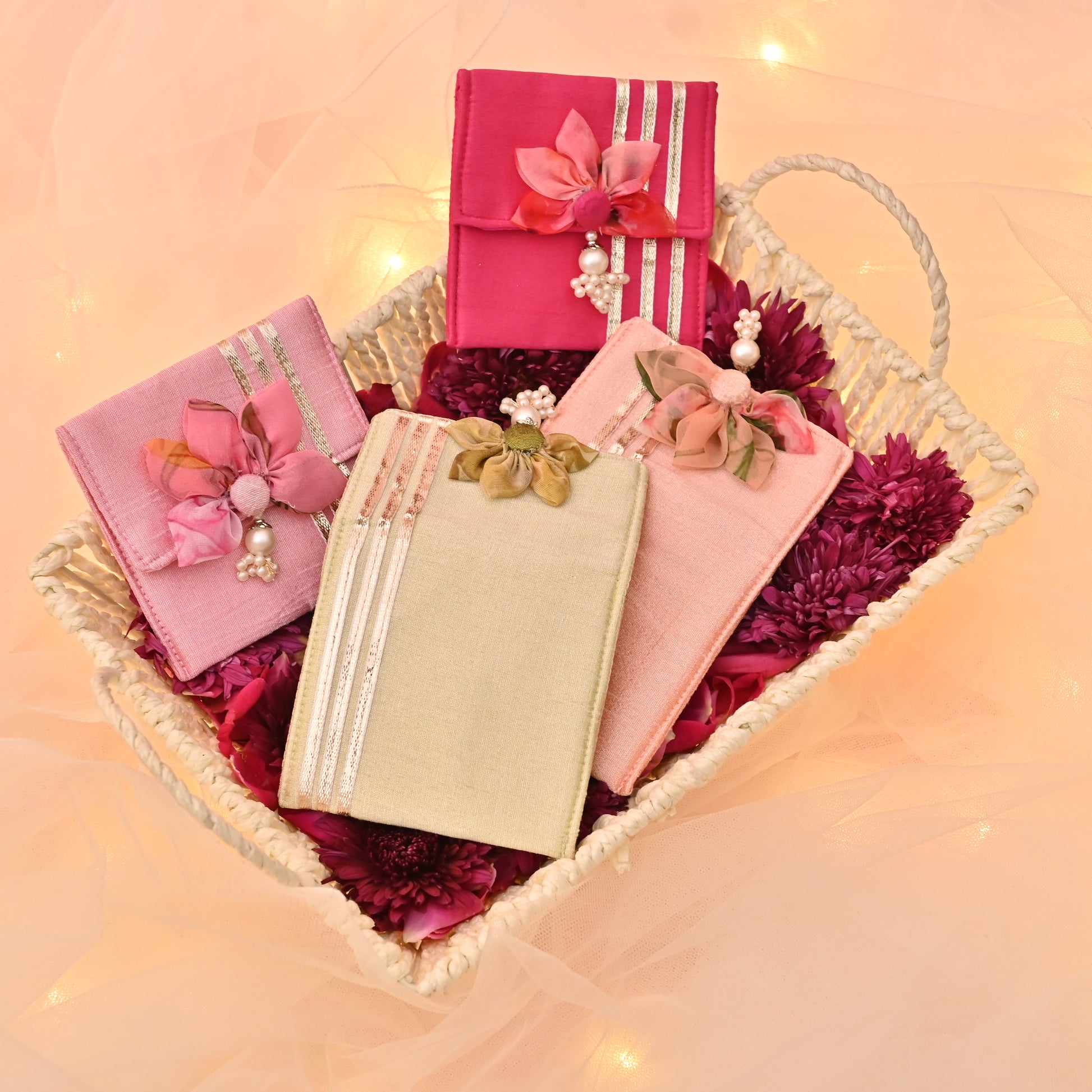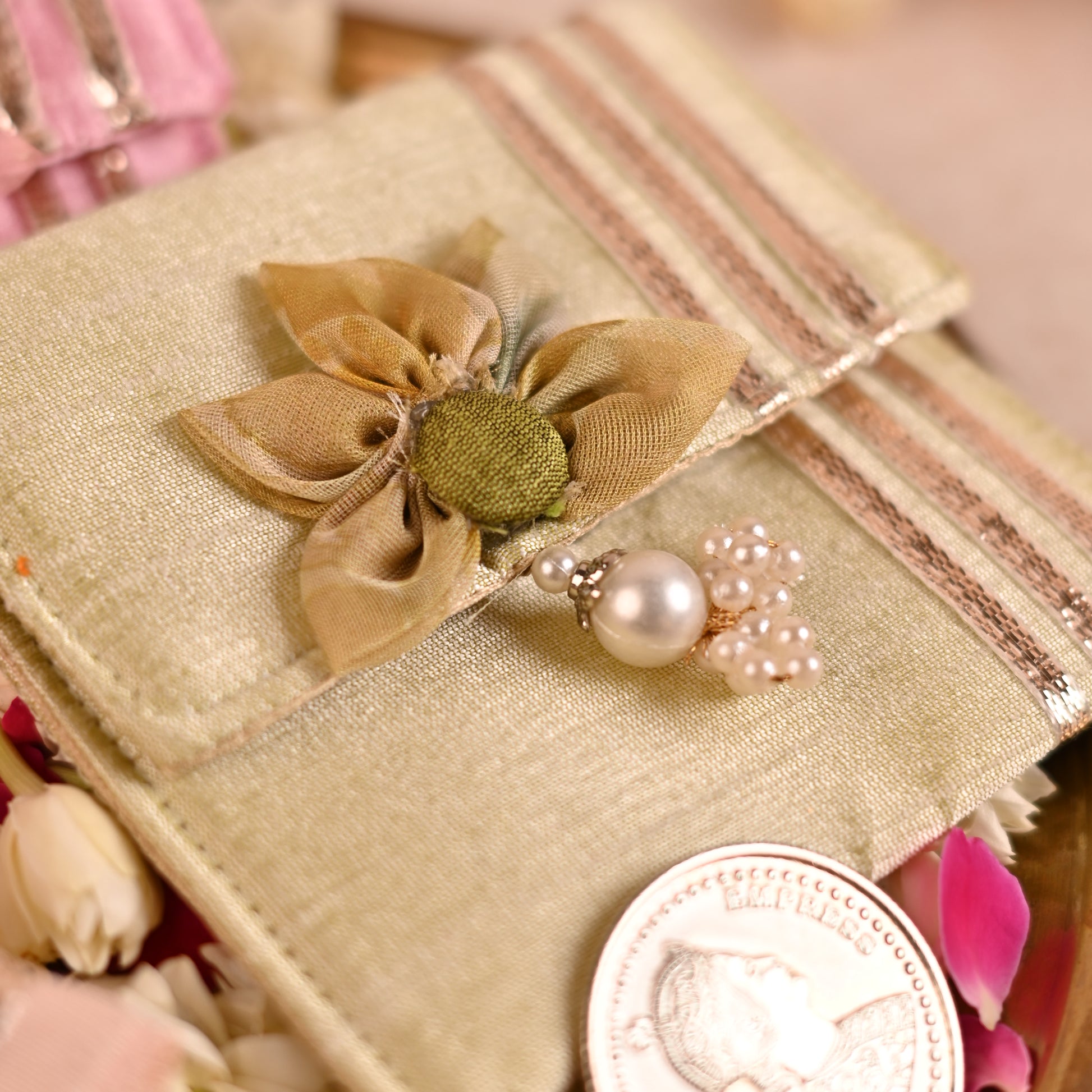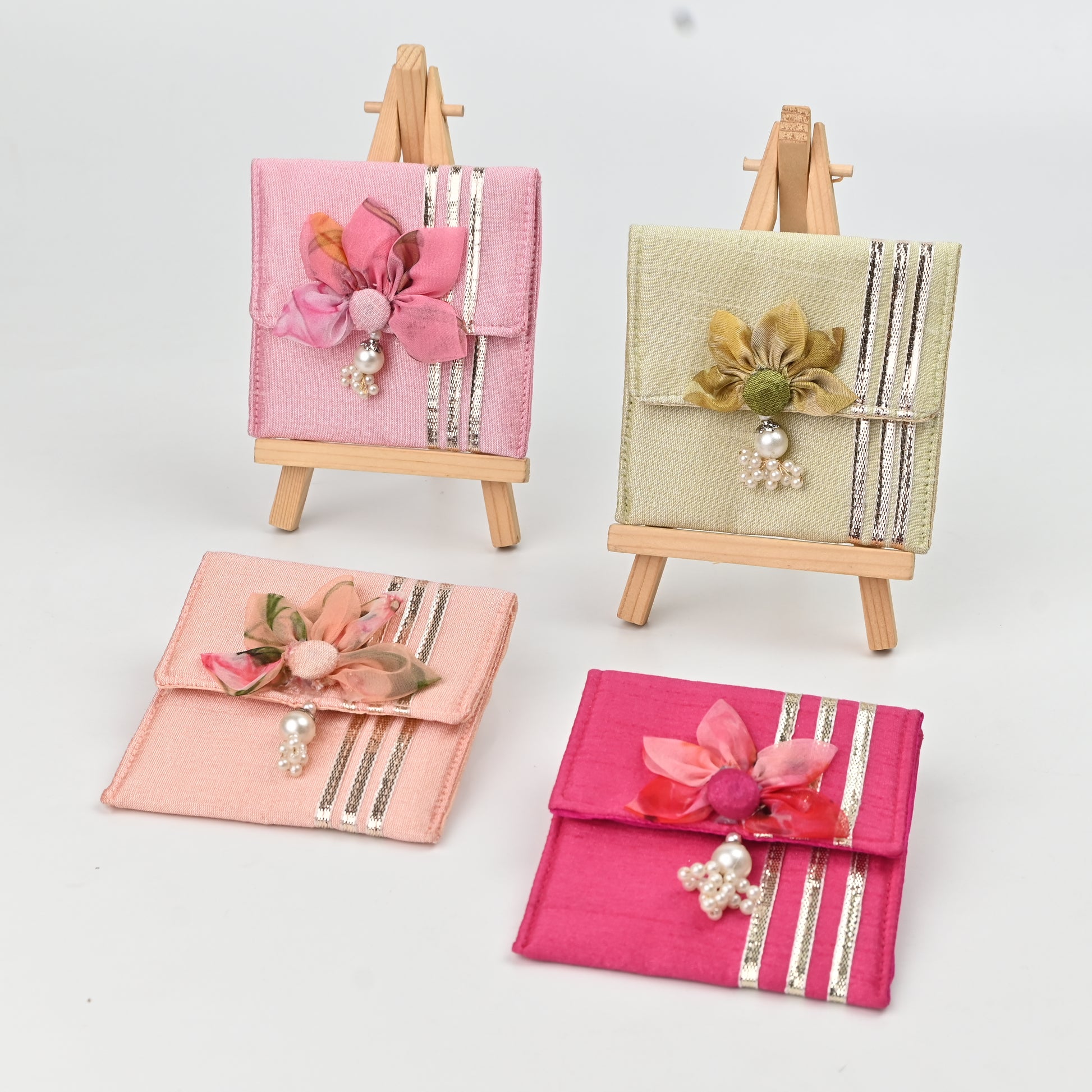 Banaavat Essence Silk Coin Pouch Set of 2 – Handcrafted Sunflower Flap & Pearl Embellishments (3.5"x3.5")