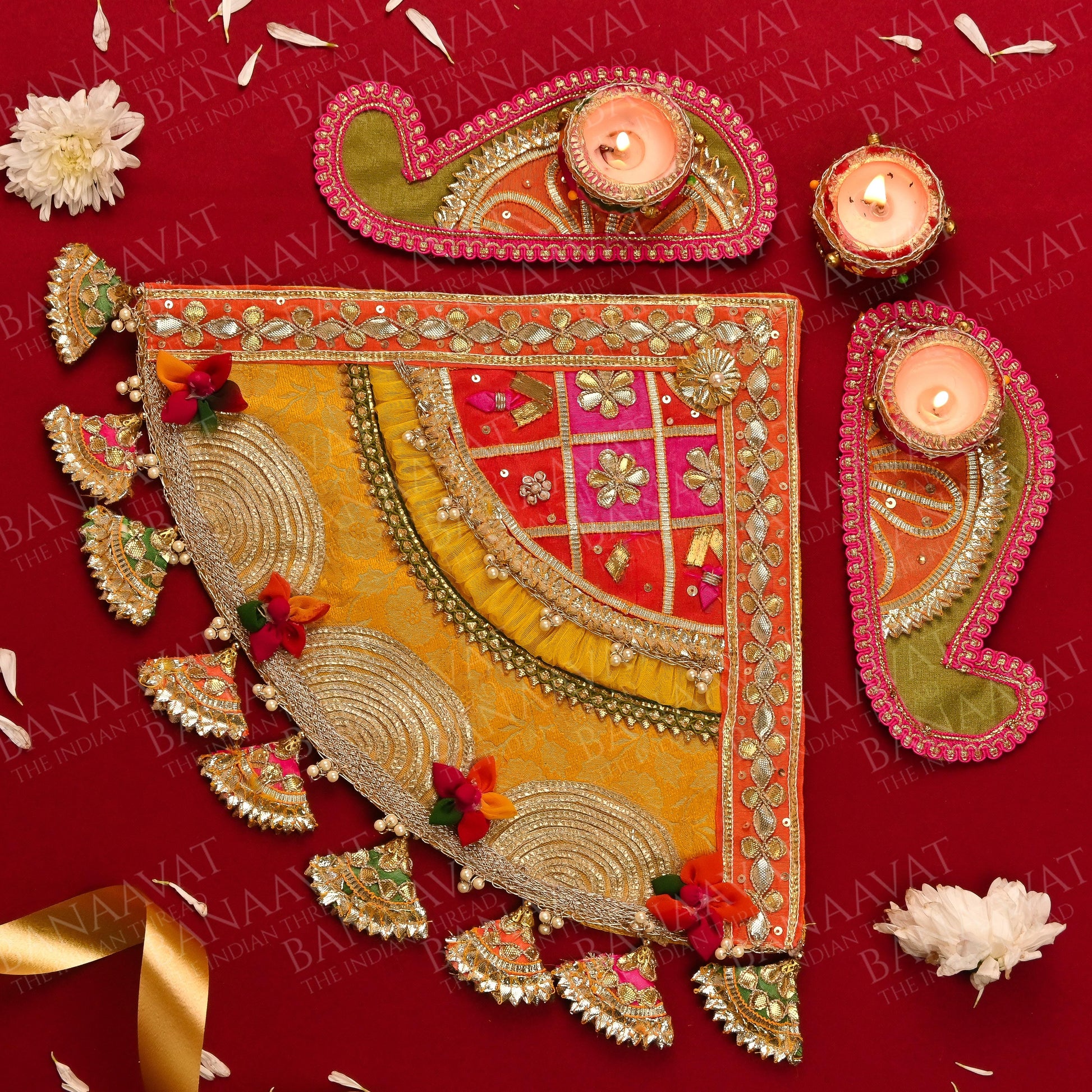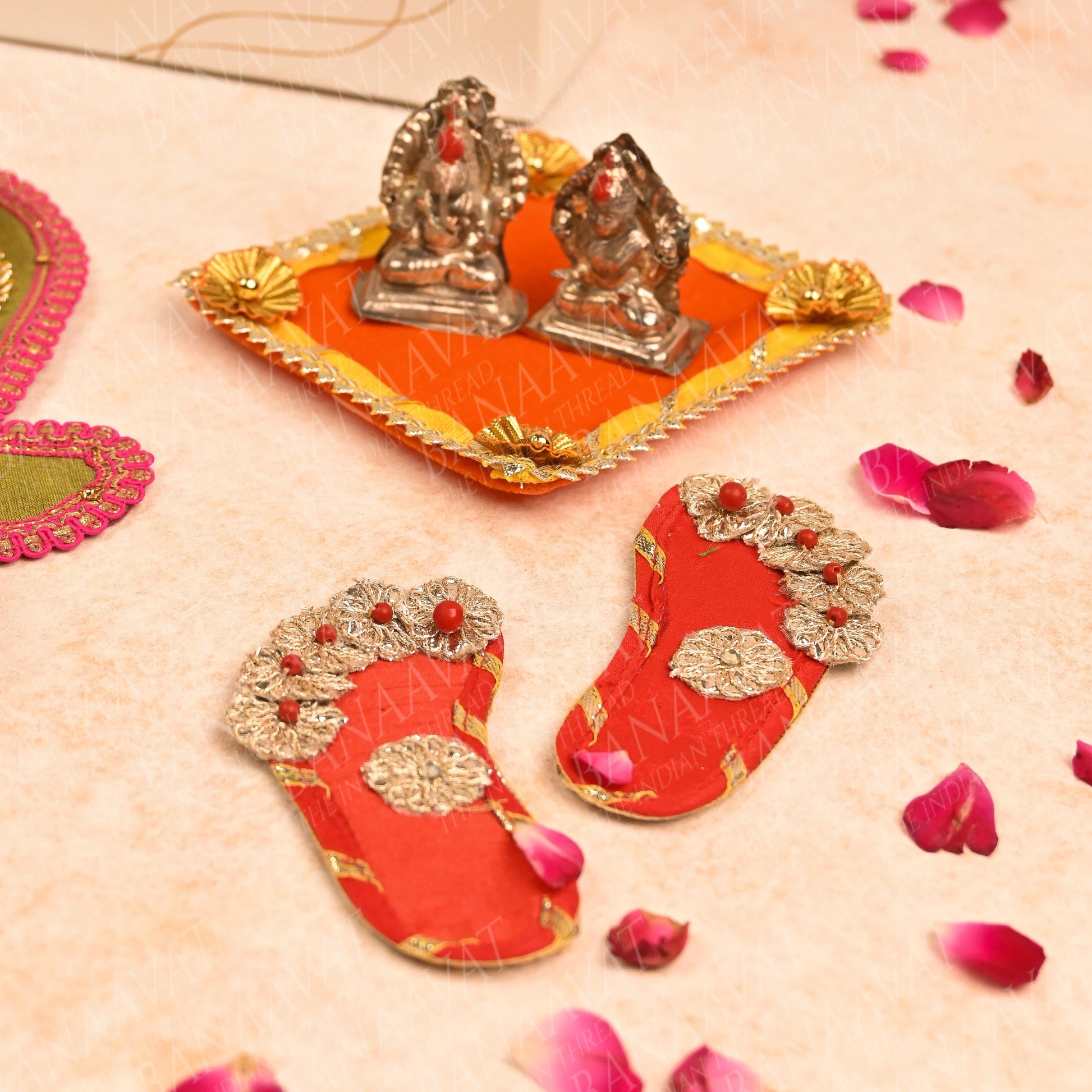 - Set includes: Handcrafted Corner Rangoli, Laxmi Charan, Shubh Laabh, Laxmi Ganesh Aasan