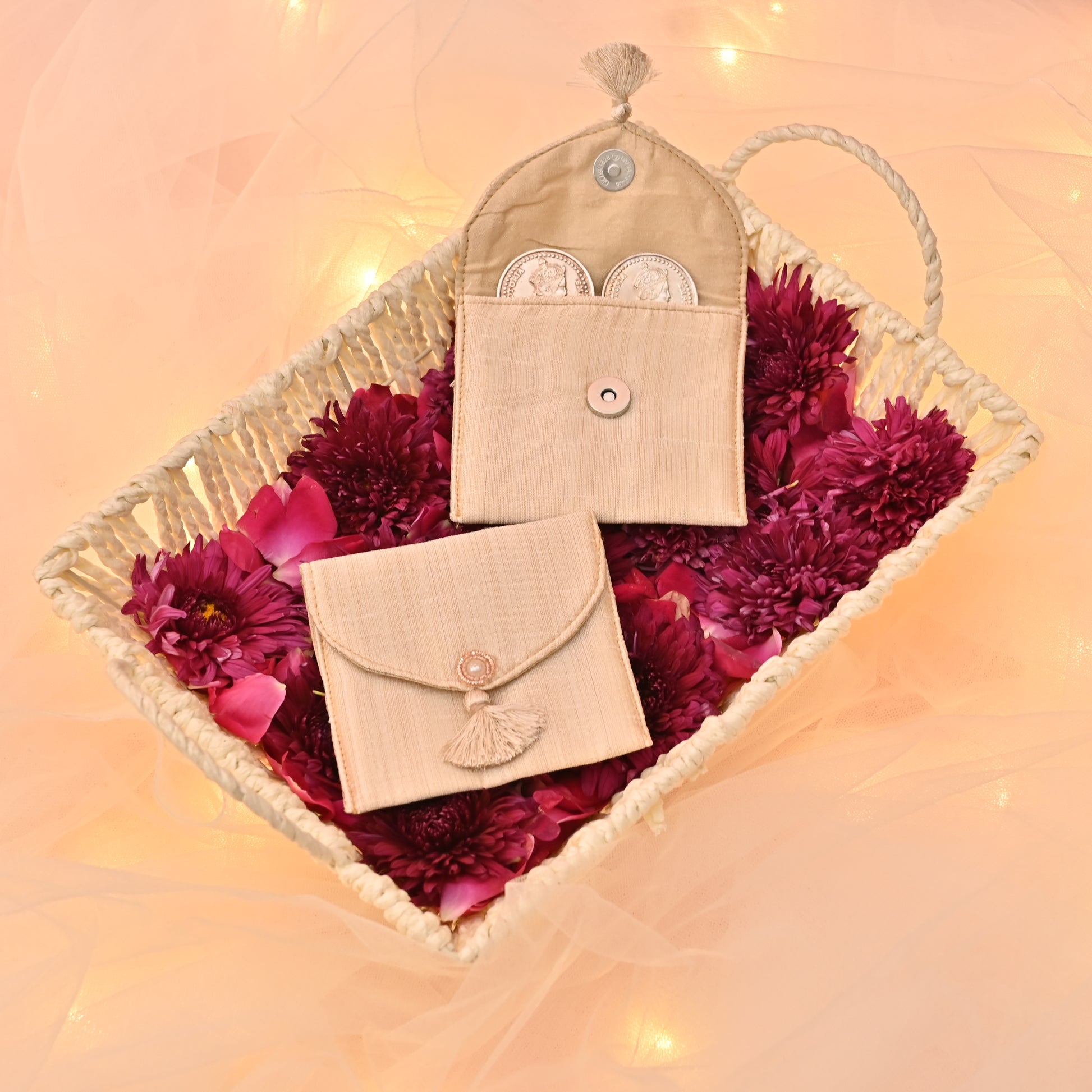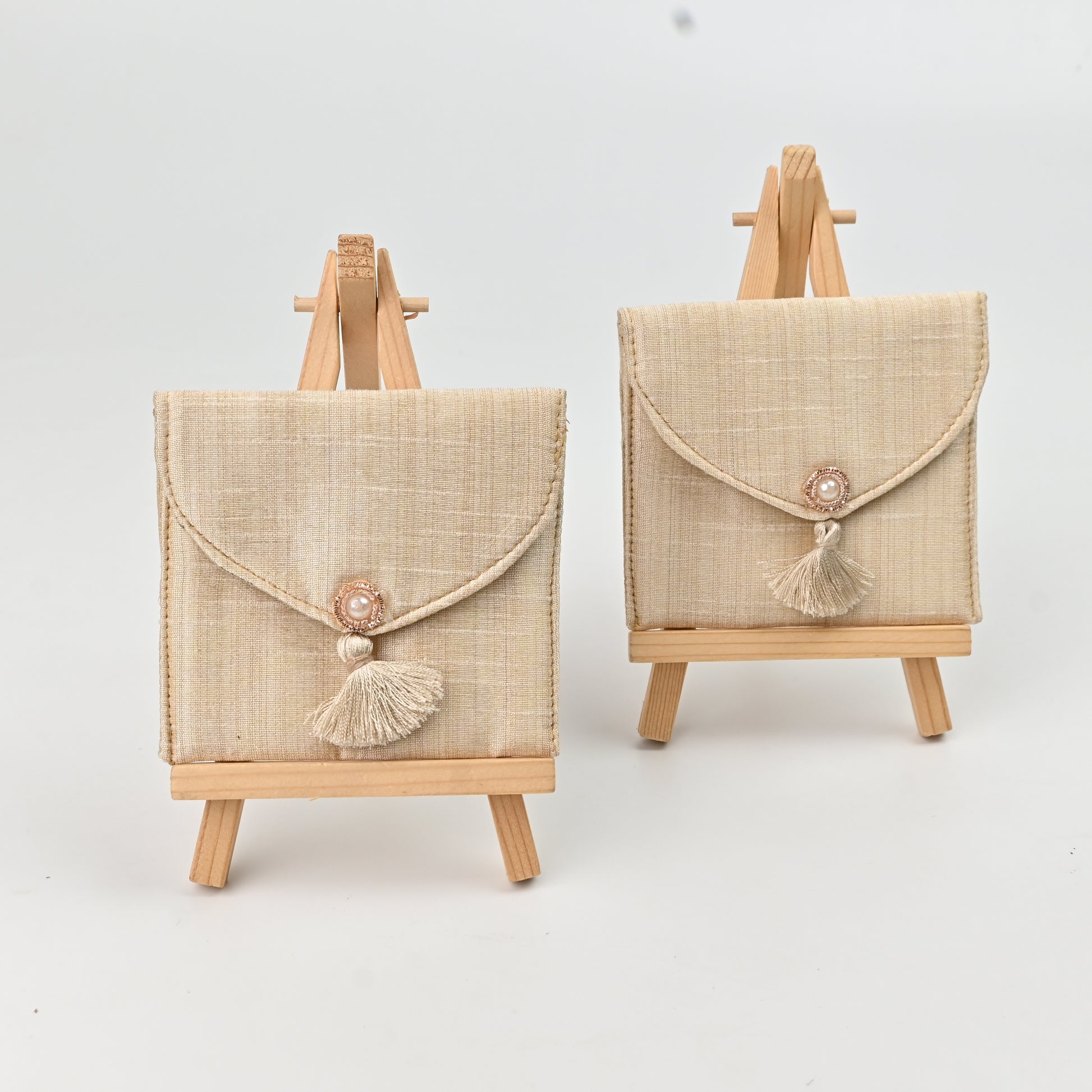 Banaavat Essence Ivory Silk Minimalist Coin Pouch – 3.5"x3.5" | Set of 2