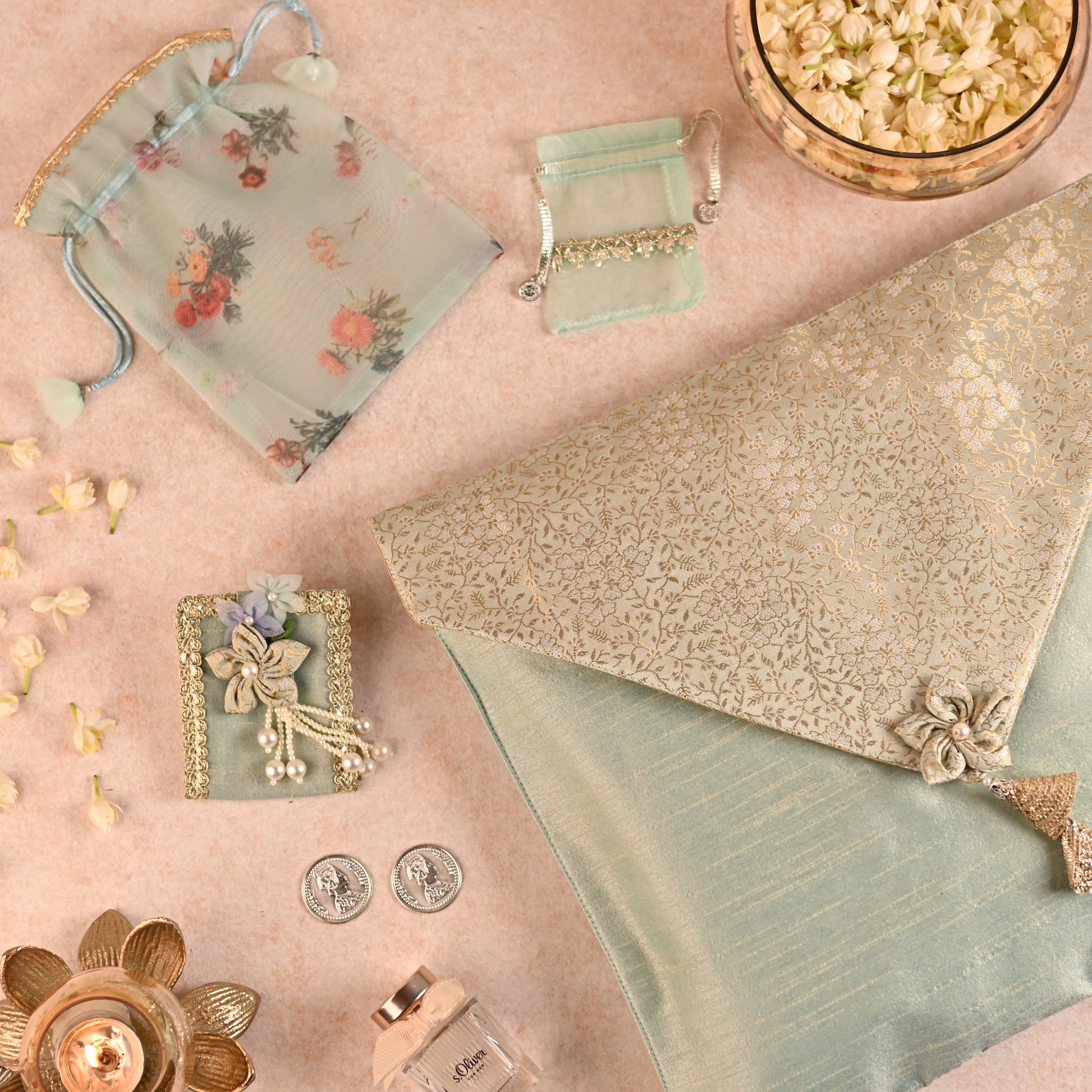 Nilasha Collection Gift Set - Saree Cover, Favor Potli, Mini potli, Coin Pouch