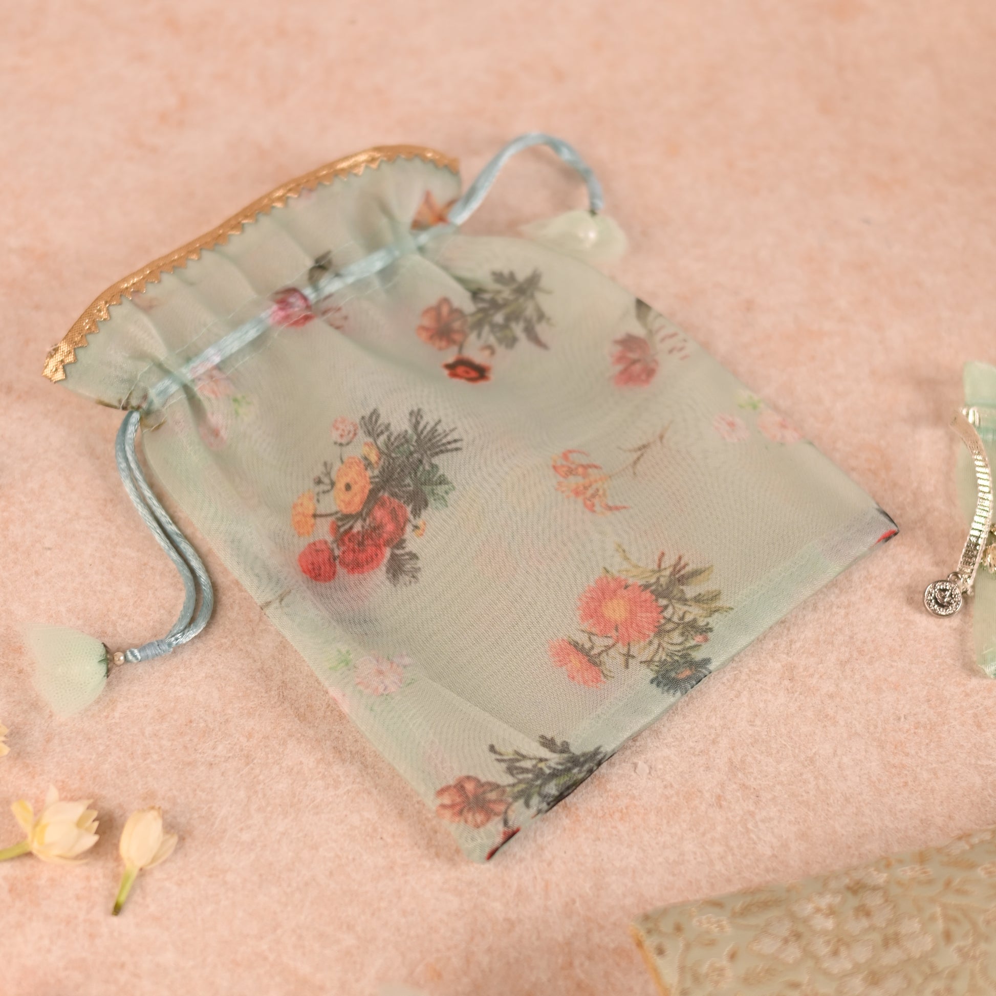 - Combo includes: Saree Cover, Favor Potli, Coin Pouch, Mini potli