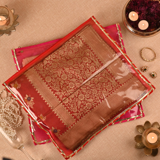 Banaavat Essence Trousseau Saree Cover – Transparent Front & Dupion Silk Back (40x40 cm)